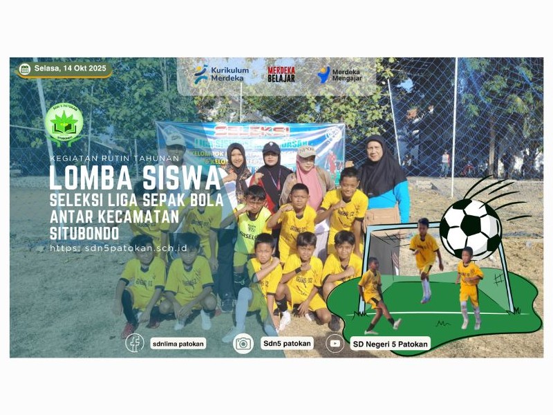 Pada hari Selasa, 14 Oktober 2025 beberapa siswa SD dari SD Negeri 5 Patokan mengikuti Seleksi Liga Sepak Bola Pelajar SD Tingkat Kecamatan Situbondo di Lapangan Sepak Bola SMA Negeri 2 Situbondo. Kegiatan ini merupakan kegiatan Tahunan yang dilaksanakan pada bulan Oktober yang dimulai dari Seleksi di Tingkat Gugus dengan perwakilan siswa 5 orang di setiap lembaga. Beberapa perwakilan siswa yang lolos pada seleksi tingkat Gugus nantinya akan mengikuti Seleksi di Tingkat Kecamatan. Kegiatan ini bertujuan untuk memilih siswa berbakat di bidang Olahraga, khususnya Sepak Bola sehingga siswa yang mempunyai bakat di bidang tersebut akan mendapat perhatian khusus untuk mempersiapkan diri di ajang Olahraga yang lebih besar kedepannya.
