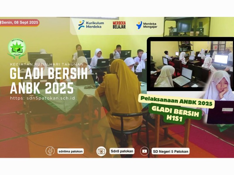 Pada hari Senin tanggal 08 September 2025 siswa kelas 5 melaksanakan Gladi Bersih ANBK (Asesmen Nasional Berbasis Komputer) Tahun 2023. Kegiatan ini diikuti oleh 30 siswa dari kelas 5A dan 5B yang telah ditentukan untuk menjadi sample. Setiap harinya pelaksanaan Gladi Bersih dibagi menjadi 2 sesi. Sesi pertama dimulai sejak pukul 07.30 WIB sampai dengan selesai, dan dilanjutkan dengan sesi kedua dilanjutkan pada pukul 10.40 WIB. Siswa akan mengerjakan soal-soal yang sebelumnya telah diuji cobakan dan dilatih oleh wali kelas masing-masing, sehingga diharapkan pada saat pelaksanaan ANBK Utama, siswa dapat mengerjakan soal dengan baik dan memperoleh hasil yang maksimal.